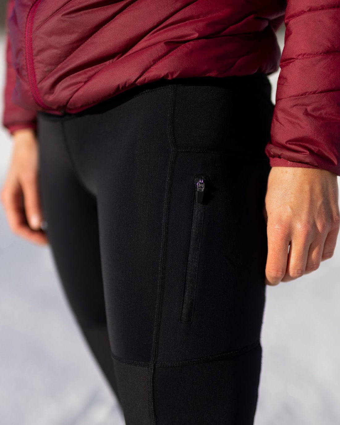 Women hiking tights Pro Black are designed for women who love spending time outdoors. They are suitable for both winter and transitional periods. The tights are made of a comfortable, stretchy and breathable material, lined with fleece to keep out the cold. They have a high waistband that can be adjusted using an inside drawcord.